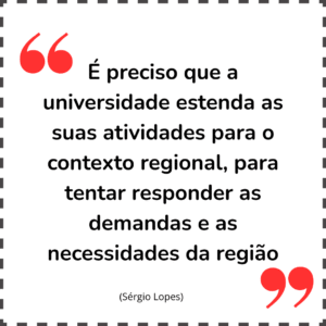 Sérgio fala da ciência com o mesmo entusiasmo de quem fala da vida. Para ele, fazer pesquisa é também devolver à sociedade aquilo que a universidade produz. “Não tem muita eficiência tentar entender a pesquisa apenas dentro dos muros da universidade. É preciso estender as atividades para o contexto regional e responder às demandas da população”, afirma.
